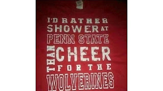 1) THIS IS MAKING LIGHT OF THE ABUSE OF CHILDREN. Say that to anyone who thinks it's "just a joke" or that it's just "getting back" at the Penn Staters who made shirts about last year's OSU scandal, which I still don't entirely understand, except that I am 100000000% positive that it didn't involve destroying children through systematic rape & cover up, so it's not even on the same planet as far as sports-related crimes. One is ignoring the rules for dumb shit like trading a jersey for tattoos, the other can destroy a person for the rest of their life. So, not related. Joking about child abuse is NOT FUNNY. N-O-T F-U-N-N-Y. That whole situation makes me so sick & sad that I have literally lost sleep and cried in public places thinking about it. So no, I do not think that this is at all appropriate.